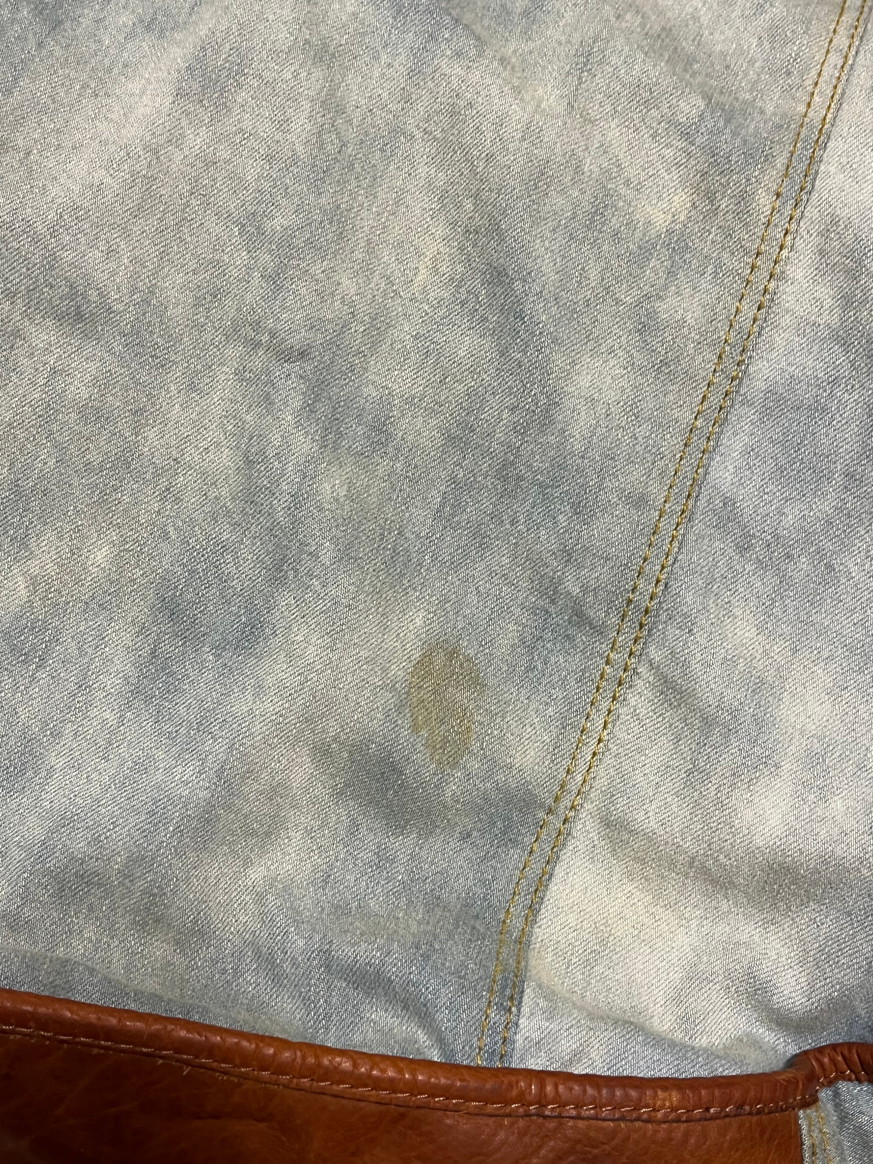 デニムの使用感や少しシミがございます。写真をご確認ください。